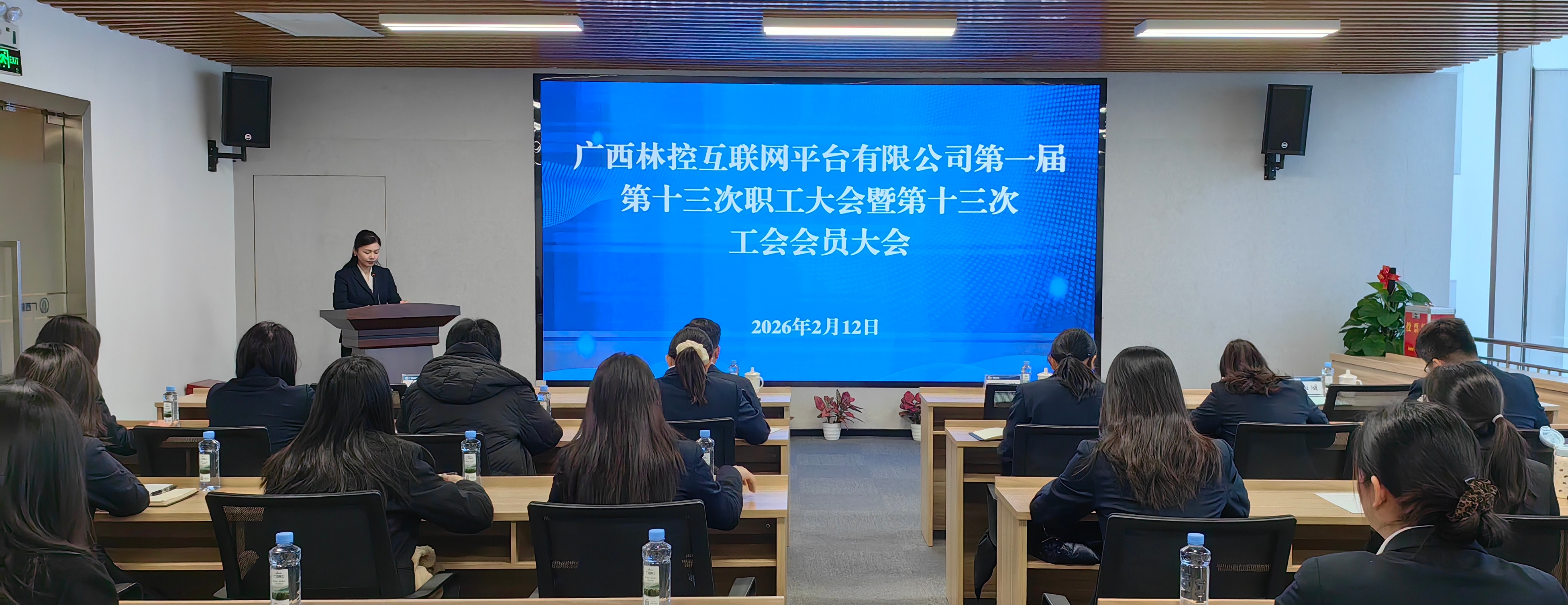 2026年2月12日,广西林控互联网平台有限公司第一届第十三次职工大会暨第十三次工会会员大会在南宁圆满召开。广西森工集团副总经理、林控公司董事长、党支部书记唐黎明,广西森工集团审计督察部副经理郑振威到会指导,全体职工参加会议。