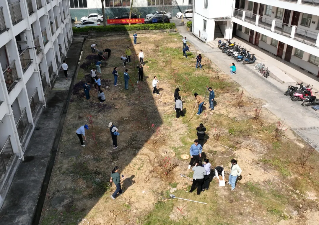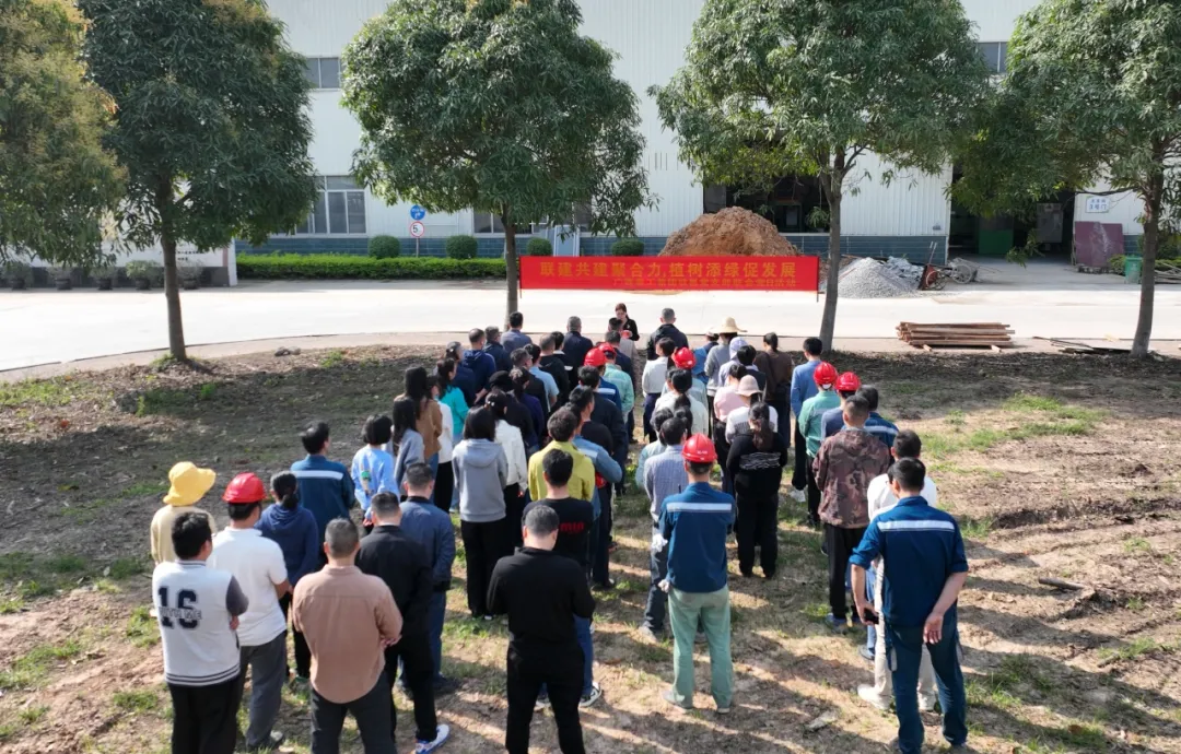 铁锹翻土的脆响、水潺潺流出的声响、党员们的欢声笑语交织在一起,成为春日里最动听的旋律,不一会儿,一排排树苗便迎风挺立,错落有致,为厂区增添了一抹灵动的新绿与艳红,也播下了满满的希望。