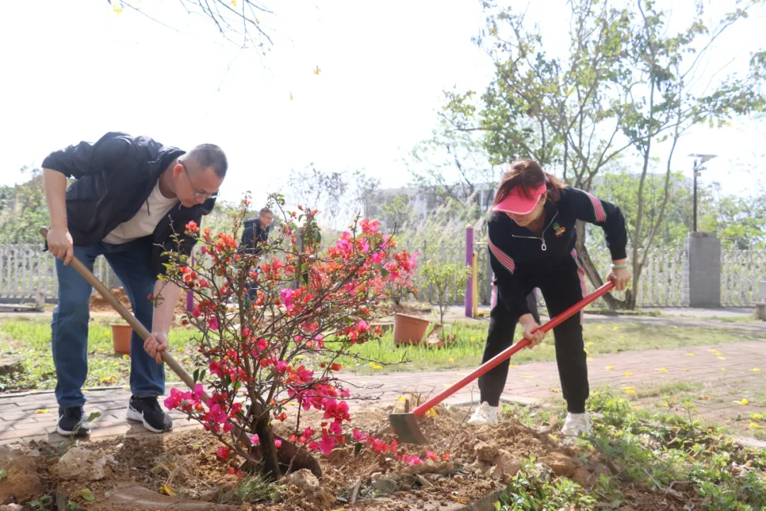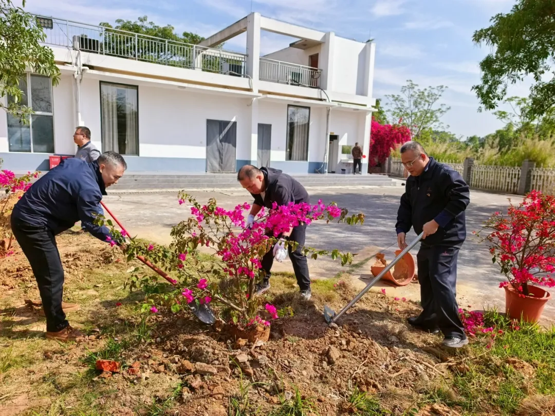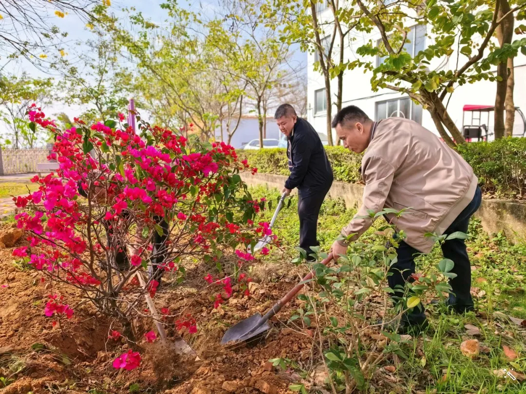春日正好,植绿正忙。在厂区宿舍楼旁的植树区域,早已备好的桃树苗、三角梅整齐排列,带着蓬勃的生机,等待着被栽种扎根。党员同志们迅速分工、默契配合,现场一派热火朝天又井然有序的景象。大家挽起衣袖,迅速到位,有的挥锹挖坑,动作娴熟有力;有的俯身扶苗,小心翼翼调整树苗的角度,确保每一株幼苗都挺拔端正、扎根沃土;有的往返穿梭浇水;还有的拿起心愿卡,一笔一画写下对集团发展的期盼、对美好生活的祝福,轻轻系在树枝头,让美好心愿与幼苗一同生长。